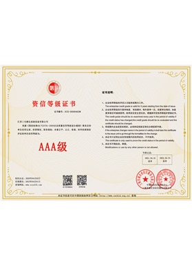 先后通過(guò)ISO9001國(guó)際質(zhì)量體系認(rèn)證、ISO14001國(guó)際環(huán)境體系認(rèn)證、OHSAS18001國(guó)際職業(yè)健康安全體系認(rèn)證及315:9002國(guó)際信用管理體系認(rèn)證、CE認(rèn)證以及取得國(guó)家知識(shí)產(chǎn)權(quán)多項(xiàng)實(shí)用型專(zhuān)利。